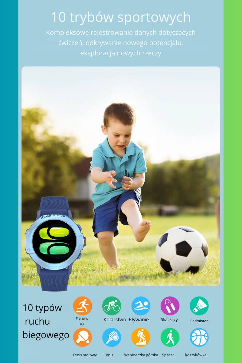 ✔ Tryby sportowe – idealne do aktywności fizycznej i zabawy.